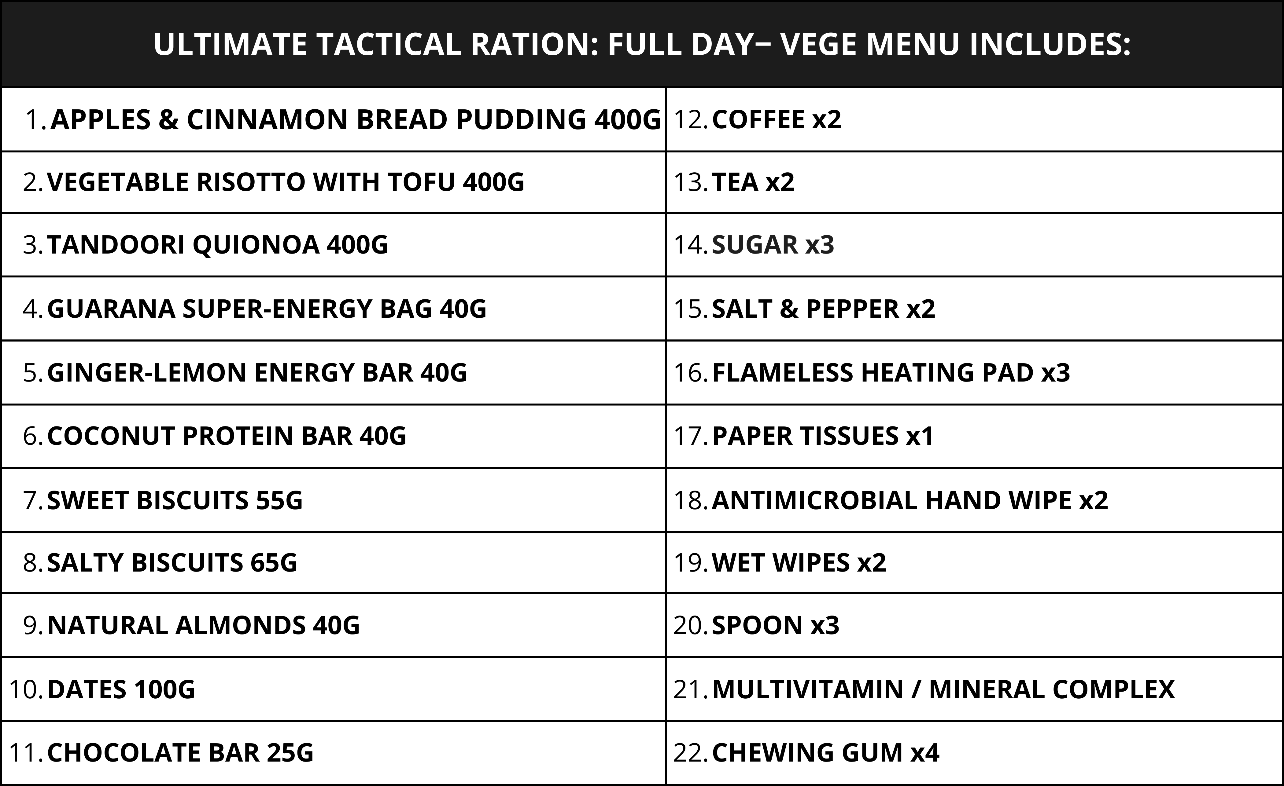 ULTIMATE TACTICAL RATION: FULL DAY - VEGE MENU