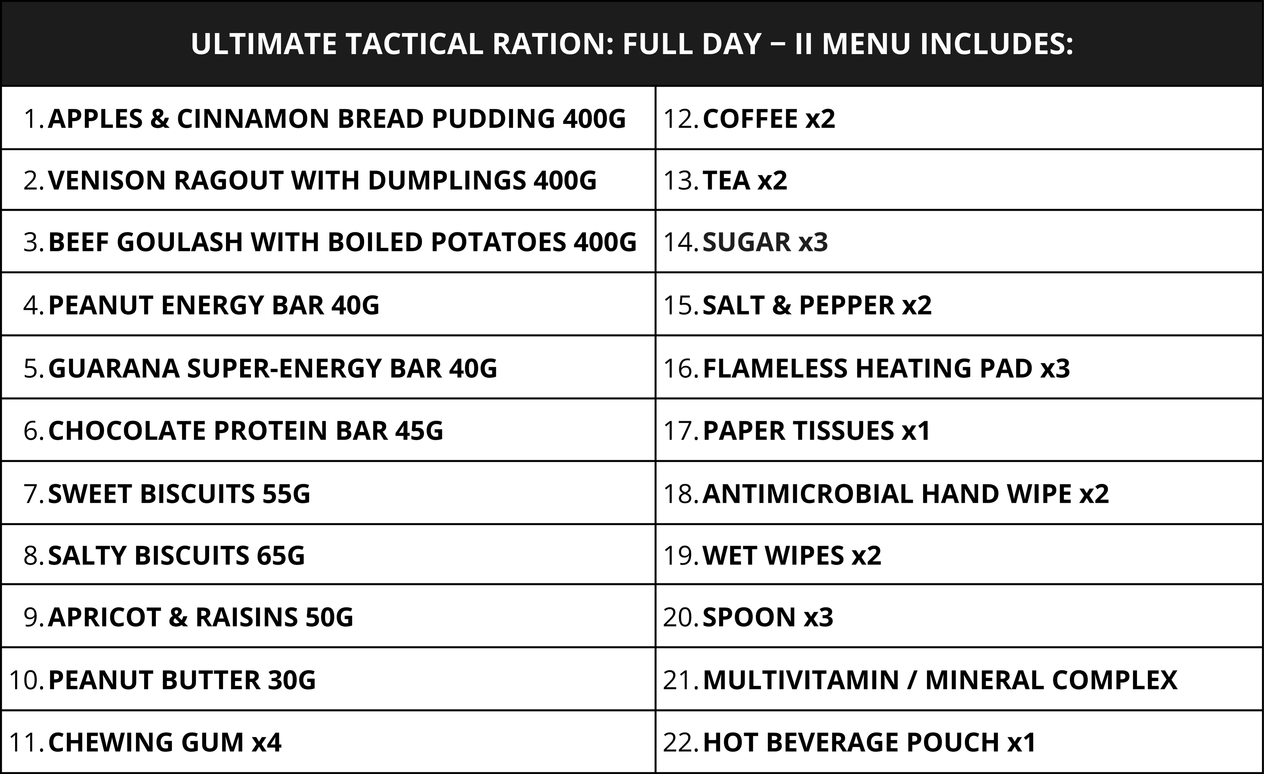 ULTIMATE TACTICAL RATION: FULL DAY - MENU II
