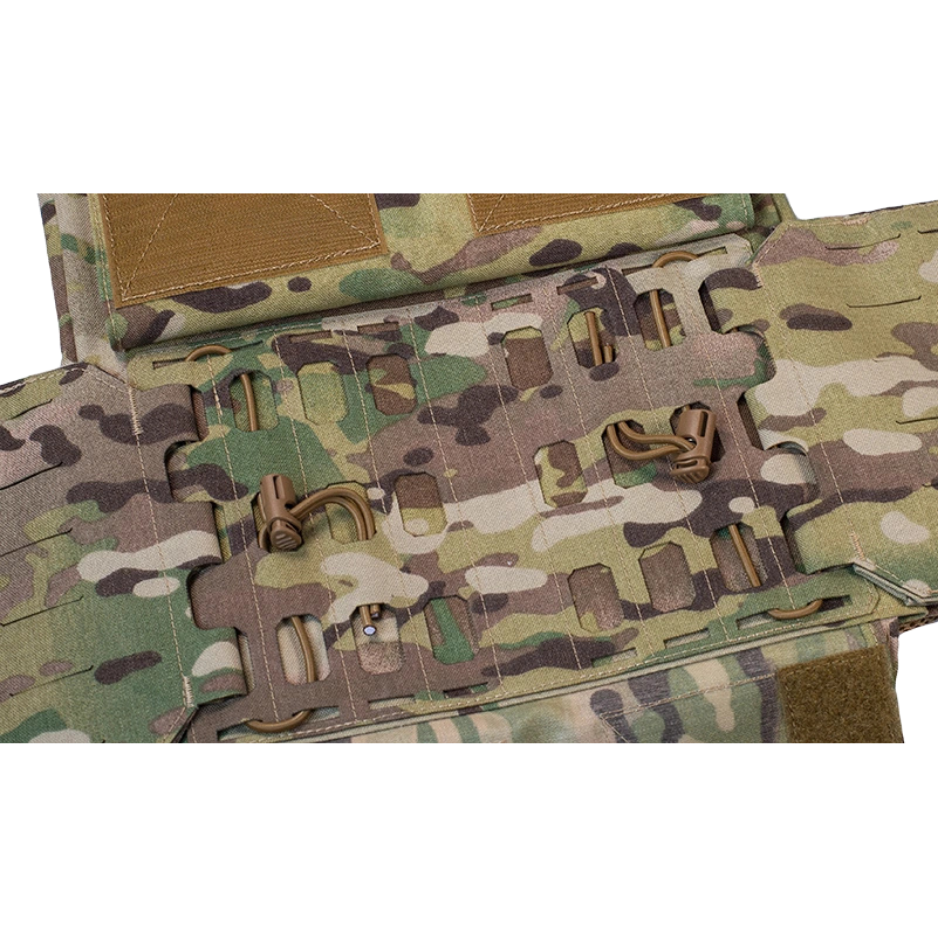 Siseküljel on 3D spacer-võrk Coolmax materjaliga ning sisseõmmeldud EVA pehmendus, mis aitab vähendada survet pikema kandmise ajal. Esipaneelil on integreeritud admin-tasku ning võimalus kinnitada esipaneele (placard) ja rinnarakmeid (chest rig) G-Hook või QASM kinnitustega.