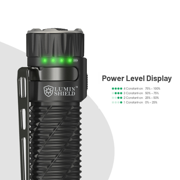 Integreeritud andurikaitse vähendab võimsust liiga lähedal olevate objektide korral, aidates vältida ülekuumenemist ning pool- ja täislukustus takistavad juhuslikku sisselülitumist. Sisseehitatud 6000 mAh 21700 Li-ion aku pakub madalaimal režiimil kuni 90 tundi tööaega ja 4 LED-indikaatorit näitavad aku laetust. 7075-T6 alumiiniumkorpus on IP68 veekindel ja kuni 2 m löögikindel, sobides kasutuseks ka nõudlikes tingimustes.