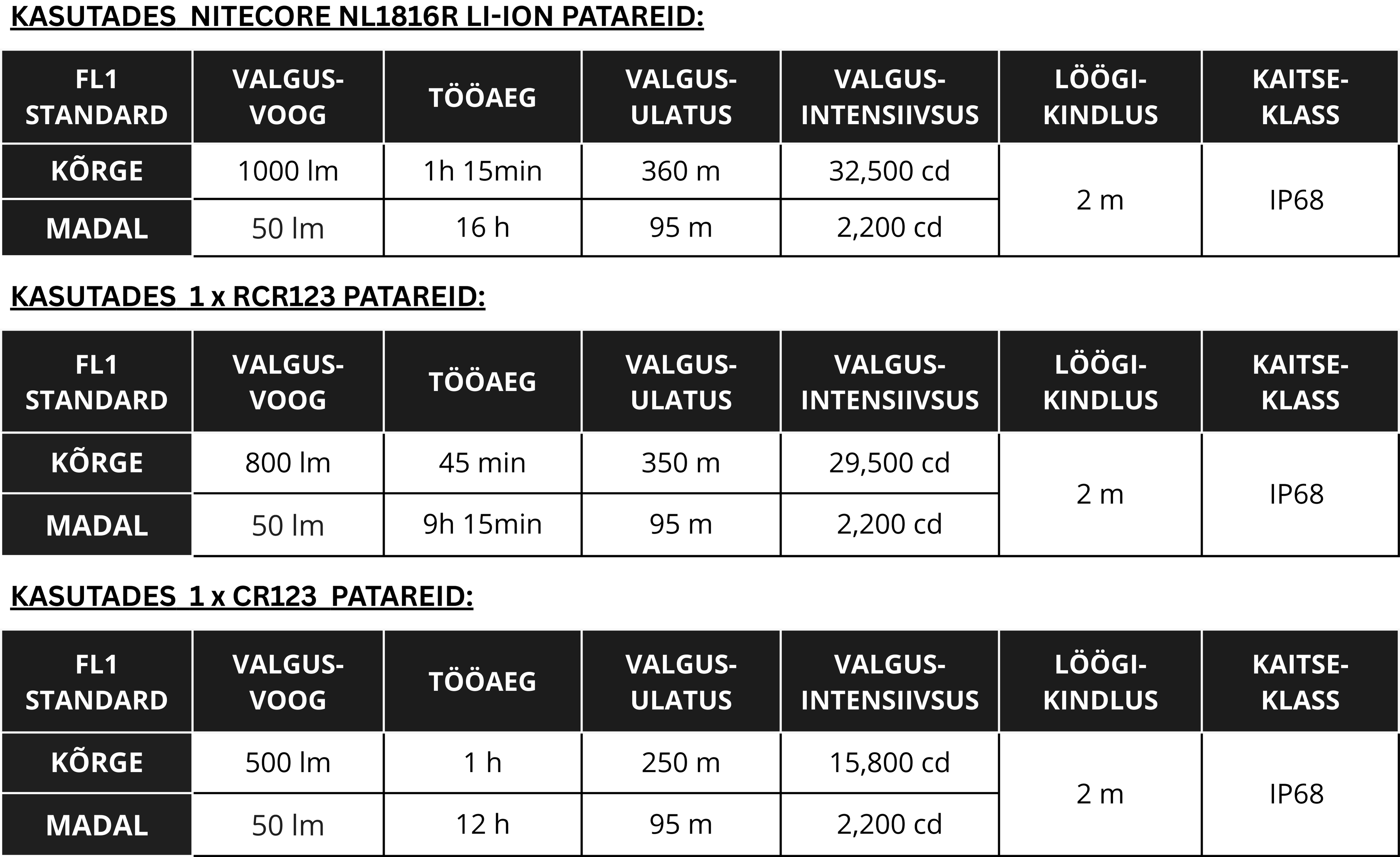 • Valgusvõimsus: kuni  kuni 1,000 luumenit, valgusvihk kuni 360 m;