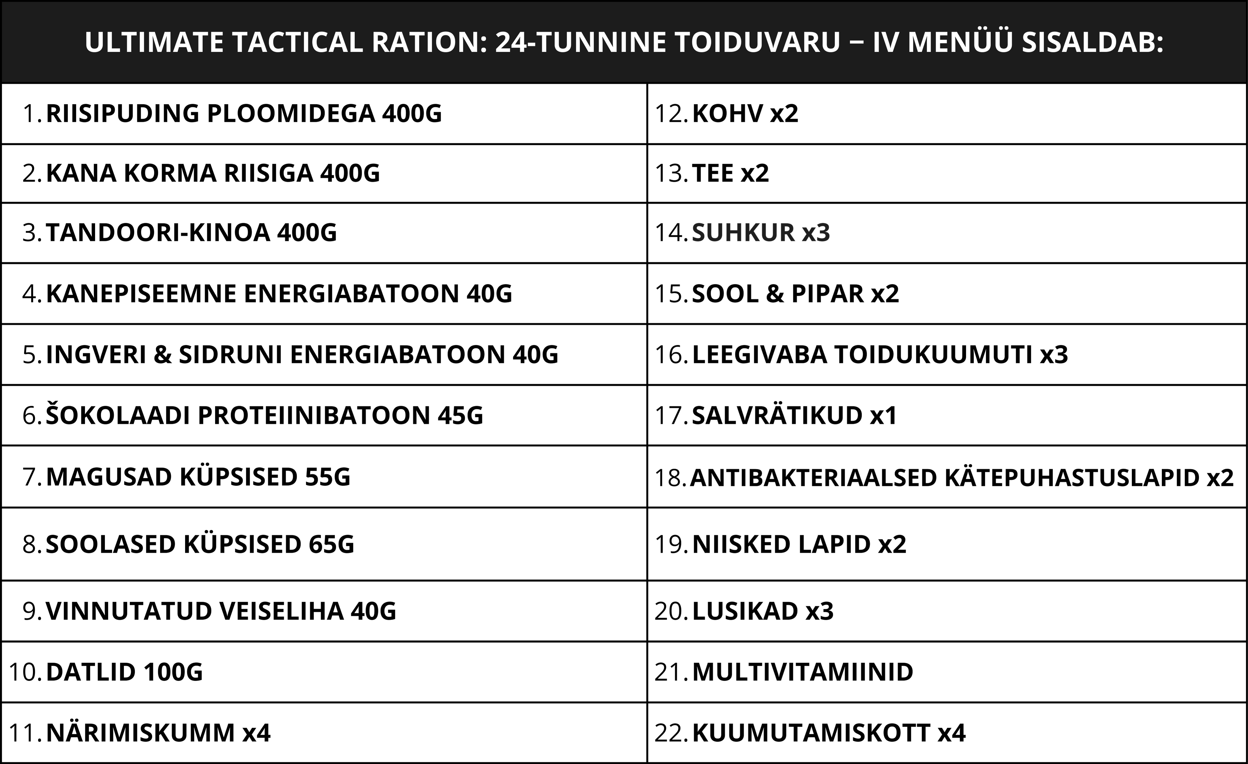ULTIMATE TACTICAL RATION: 24-TUNNINE TOIDUVARU - MENÜÜ IV