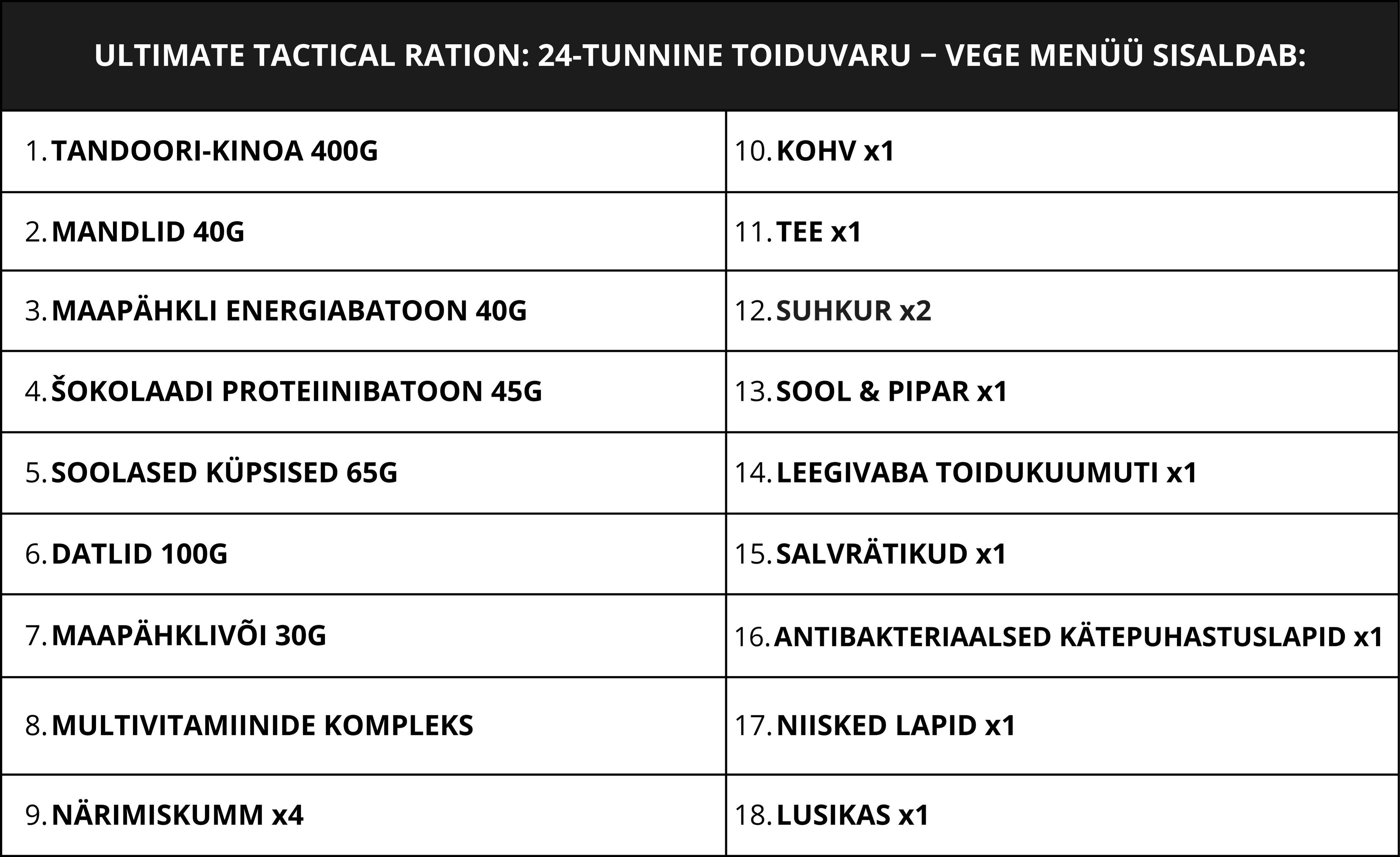 ULTIMATE TACTICAL RATION: POOLEPÄEVANE TOIDUVARU - VEGE MENÜÜ